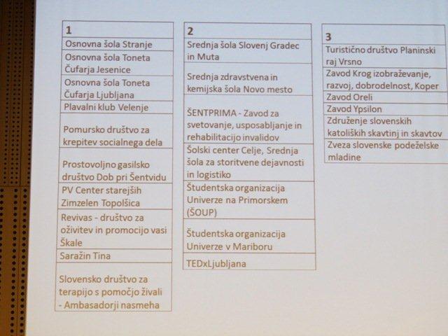 Več o zaključni prireditvi je objavljeno na strani MSS (http://www.mss.si/sl/novice/895/1/podeljena-priznanja-najboljsim-prostovoljcem-preteklega-leta ) in v fotogaleriji (glej link na prejšnji povezavi: Fotogalerija projekta se nahaja na FB strani Mladinskega sveta Slovenije).