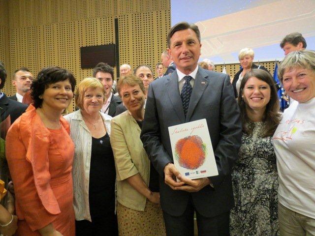 Za sprejem na Brdu je društvo REVIVAS prejelo 7 vabil. Udeležil se ga je lahko le del projektne skupine za pripravo zbornika. Po prireditvi smo predsedniku RS Borutu Pahorju ponosno izročili izvod Škalskih zgodb s posvetilom in našimi podpisi (teh je bilo malo več kot prisotnih).