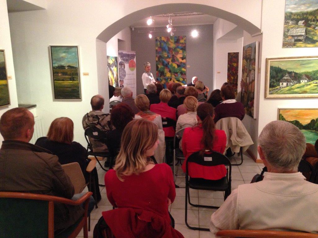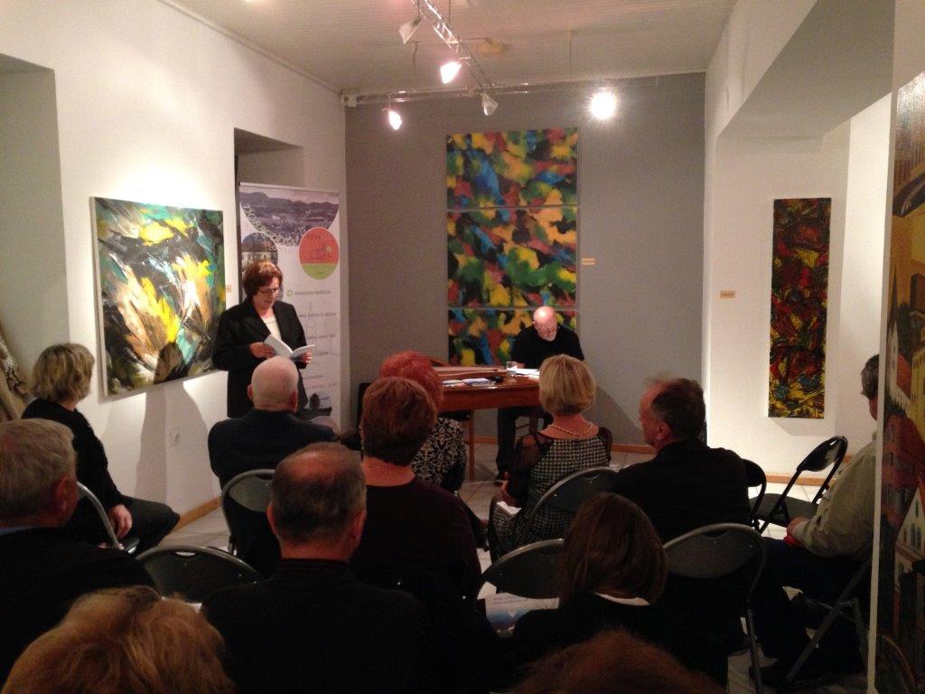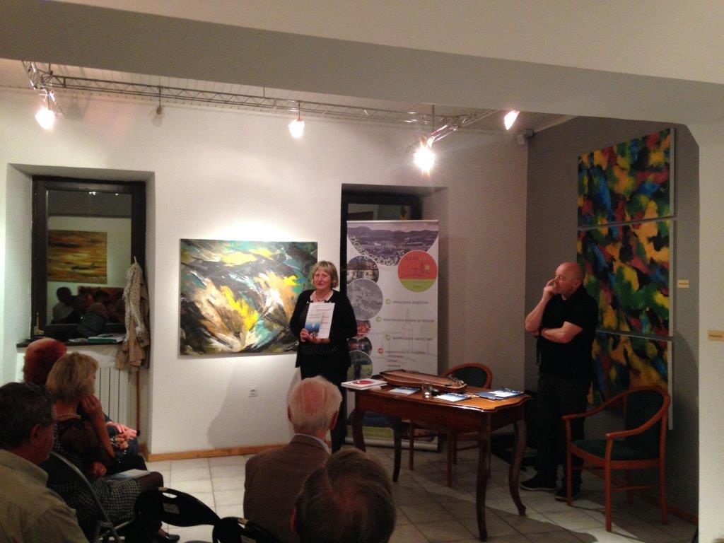 Le pet dni kasneje, v torek, 14. oktobra, smo društvo in zbirko predstavili še v Mestni galeriji Šoštanj. Program je tokrat povezoval pesnik in pisatelj Peter Rezman, ki je tudi sam prispeval v zbirko dve pesmi. Skupaj s pesmimi Dolfeta Lipnika, Avgusta Tanška in Martina Pustatičnika sta tvorili ogrodje zbirke. V Šoštanju so bile predstavljene pesmi vseh štirih nosilnih in še 14 drugih avtorjev. Vsebinsko je bil poudarek na pesmih o Družmirju in Gaberkah, pesmih o srečanjih preseljenih ter knapovskih pesmih. Brali so jih Jože Aristovnik, Miroslava Hrovat, Franc Hudomal, Hinko Jerčič, Miro Perovec, Vera Pogačar, Danijela Pokleka, Martin Pustatičnik, Peter Rezman, Jože Silovšek, Anka Strožič ter Avgust in Božena Tanšek.