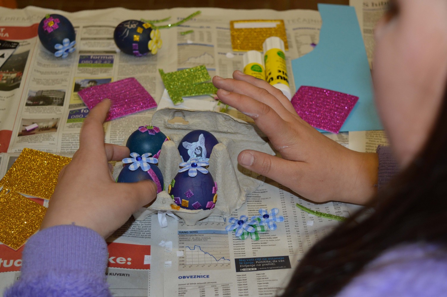 Šibe, zelenje, pomaranče, rože iz krep papirja in pisani trakovi ter seveda pirhi so pričarali prijetno predpraznično vzdušje, svoje pa je dodala še delovna vnema udeležencev. Nastalo je veliko lepih izdelkov. Snope so otroci na cvetno nedeljo prinesli k cerkvi, pirhe pa bodo zagotovo kmalu pojedli.