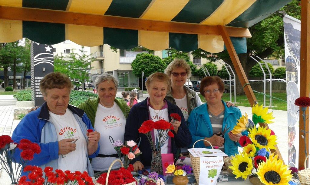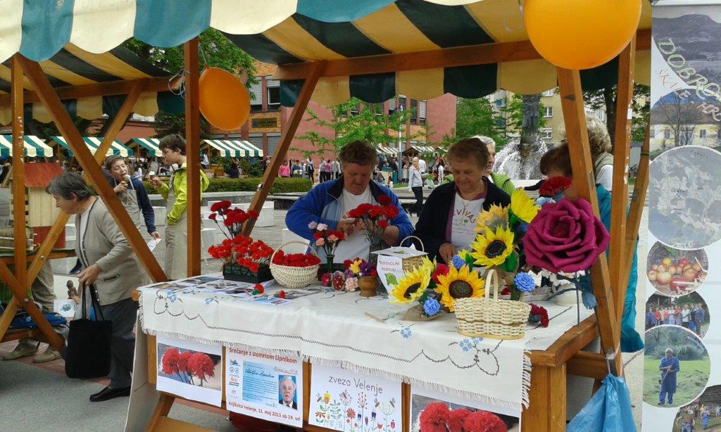 V tednu proslavljanja 70. obletnice konca 2. svetovne vojne so imele naše izdelovalke rož iz krep papirja in mlade turistke spet polne roke dela. V četrtek, 7. maja 2015 popoldne so Milena Blažič, Angela Jan in Jožica Brešar v sklopu prireditev Promenada ob sedemnajstih, ki jih je organiziral Festival Velenje, na velenjski promenadi izdelovale rdeče nageljčke - nageljčke miru. Mimoidoči so se lahko tudi sami preizkusili v tej spretnosti ali pa dobili že izdelan nageljček za spomin.
