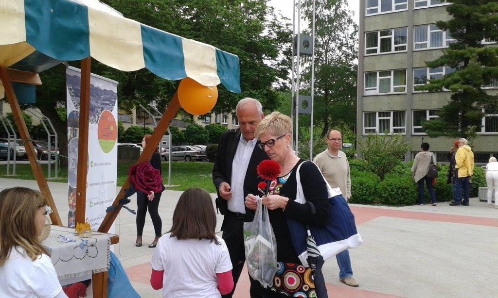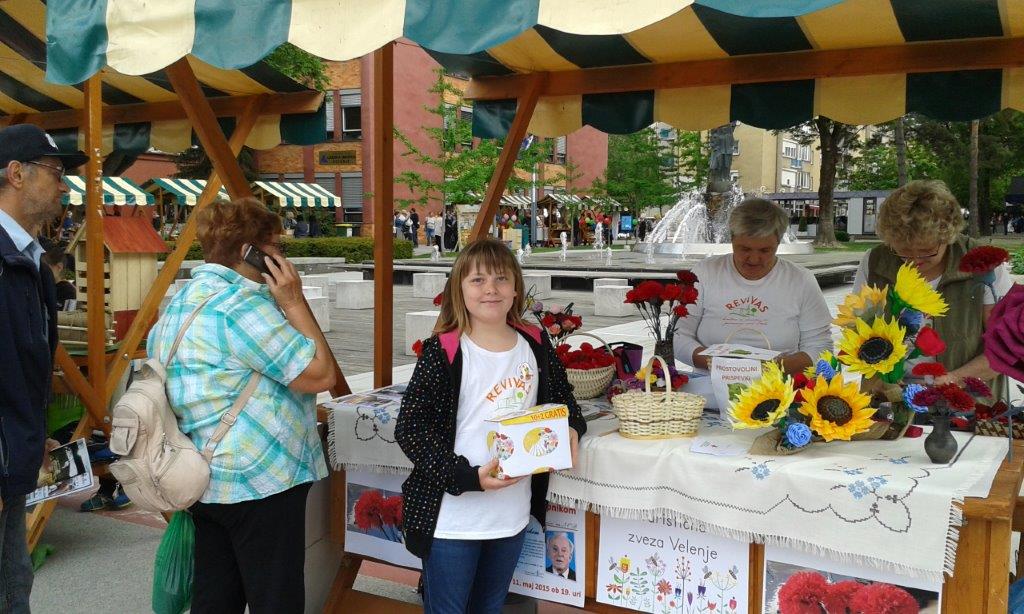 Naše društvo se je predstavilo tudi na 20. Cvetličnem sejmu, ki je potekal v soboto, 9. maja na Titovem trgu v Velenju. Rdeči nageljčki so imeli na stojnici, poleg vabil na prihajajoče dogodke ter predstavitvenih gradiv društva in ponudnikov, znova glavno vlogo. Pet izdelovalk, Angela, Jožica, Hedvika, Marija in Lojzka, je celo dopoldne skrbelo, da zaloga, ki so jo pripravile, ni pošla. Rdeči nageljčki so lepo popestrili dogajanje, marsikateri obiskovalec pa si ga je z veseljem zataknil v gumbnico.