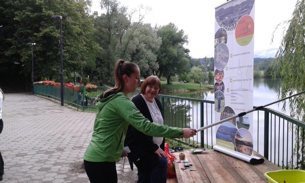 V sredo, 29. julija popoldne smo kljub neobetavni vremenski napovedi izvedli drugo letošnjo predstavitev domačih dobrot in izdelkov pri Ribiškem domu ob Škalskem jezeru. Na srečo se je dež za nekaj ur preselil drugam, popoldne pa so številni Velenjčani in turisti izkoristili za sprehod ob jezeru. Marsikateri se je tudi ustavil pri Ribiškem domu, kjer so za živahno dogajanje poskrbeli ponudniki, izdelovalke rož iz krep papirja ter člani društva in naši mladi turisti z igrami in animacijami za otroke in odrasle. Obiskovalci so si lahko s pravilnim odgovorom na vprašanja o Škalskem jezeru, ribah, najdbah mastodonta in nekdanji škalski cerkvi prislužili sladko nagrado. Otroci in odrasli pa so se najbolj zabavali pri lovljenju prav posebnih rib. Ribiške karte za ta ribolov so bile zastonj.