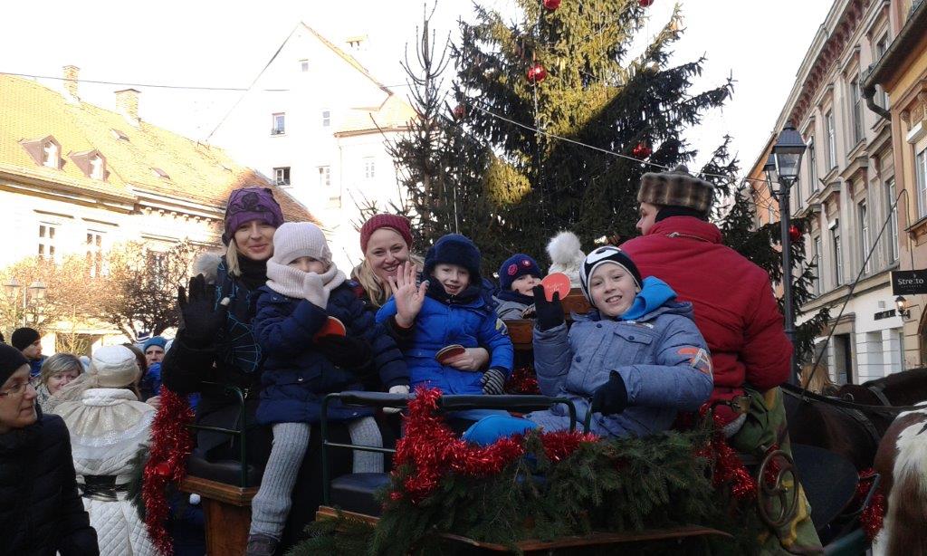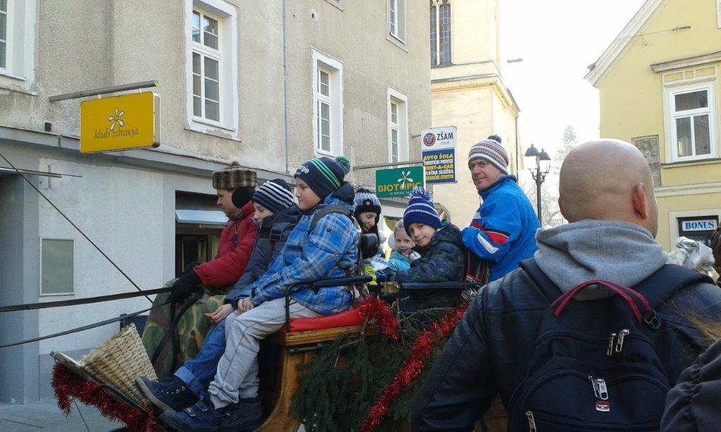 Preden je Pravljična dežela zaprla svoja vrata, so se naši mladi turisti posladkali pri Sladkem Toniju in se s kočijo popeljali po mestnem jedru. In da ne bi Celja zapustili lačni, so si v piceriji Koper pred odhodom vlaka privoščili še košček pice. Seveda izlet na tak dan ne bi bil popoln, če ne bi bilo daril. V Paški vasi jih je prinesel na vlak kar naš lokalni Božiček Edo Hudournik. Potem ko je otrokom izvabil pesmico o zimi in jim obljubil sneg (če bodo pridni), jim je razdelil še "srečke", ki so vsem mladim turistom prinesle majhen paket sladkarij. V Velenje smo se vrnili dobre volje in polni vtisov.