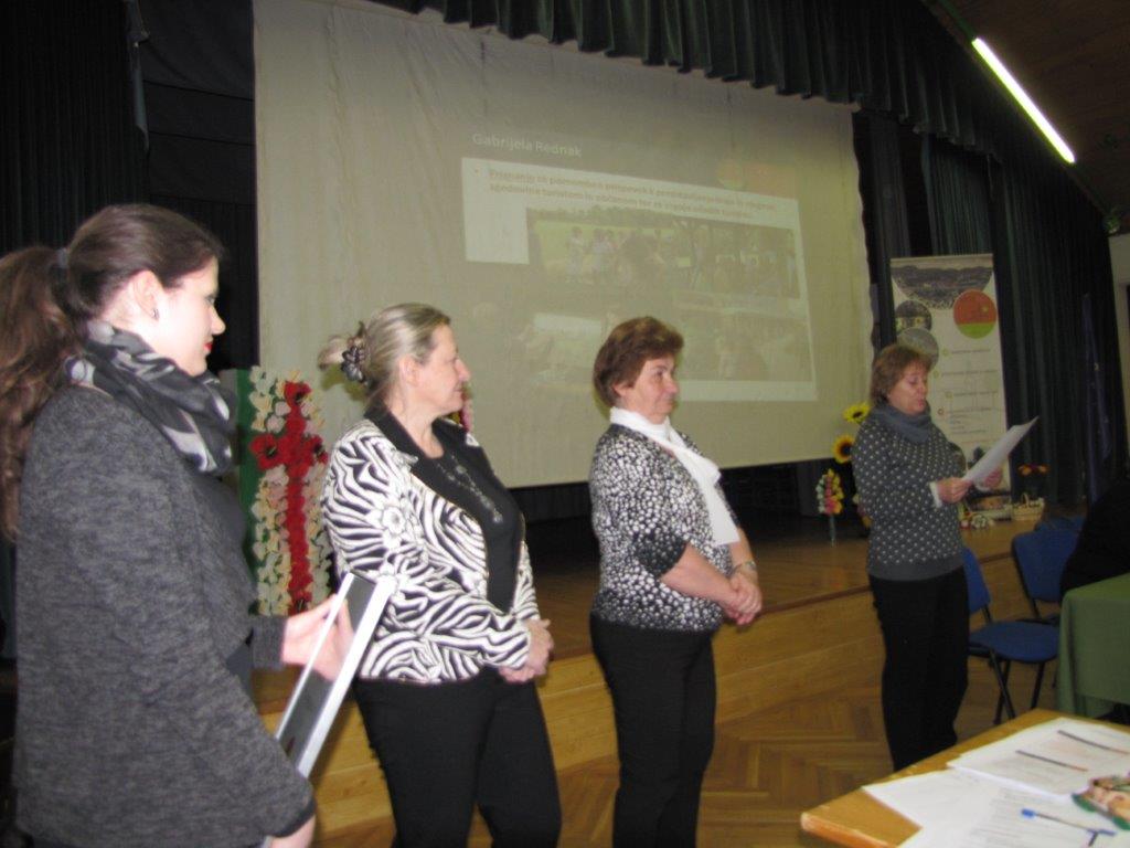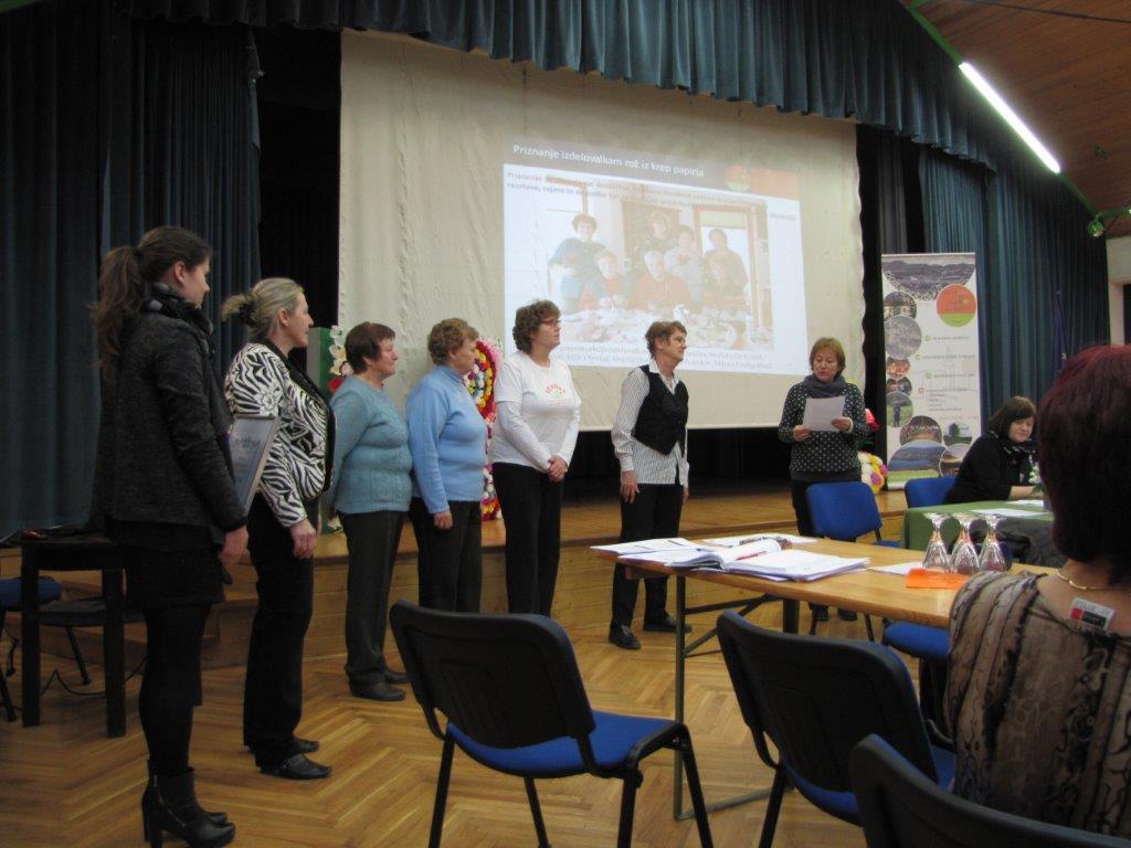 Izdelovalke rož iz krep papirja, ki so se v začetku tega leta združile v sekcijo, so na skupščini prejele priznanje za ohranjanje dediščine, izdelavo številnih cvetov in aranžmajev za razstave, sejme in dogodke ter za uspešno predstavljanje kraja in društva po Sloveniji. Z nekaj odličnimi predstavitvami se je v lanskem letu izkazala tudi Gabrijela Rednak ter za to prejela priznanje za prispevek k predstavljanju kraja in njegove zgodovine turistom in občanom ter za vzgojo mladih turistov.