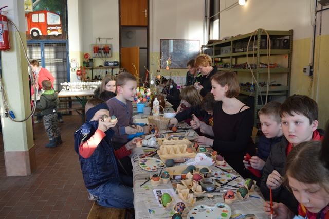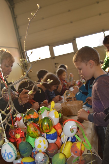 V času delavnice smo zbirali tudi pirhe za razstavo. Posebej smo bili veseli eksponatov, ki so jih obiskovalci dostavili na podlagi našega poziva. Seveda pa smo vključili tudi izdelke, ki so nastali na delavnici. Razstavo smo po zaključku delavnic prestavili v vežo gasilskega doma, kjer je bila na ogled v soboto, v nedeljo pa smo del razstave prenesli na Jožefov sejem.