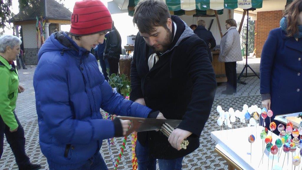 Po uspešno izvedenih velikonočnih delavnicah se je društvo REVIVAS Škale v soboto, 19. marca 2016 dopoldne predstavilo še v Velenju na t. i. velikonočni tržnici. Turistično društvo Vinska Gora je izdelalo veliko snopov, naše izdelovalke rož pa so poskrbele za njihovo okrasitev. Predstavljali smo tudi škalski snop, izdelke naših mojstric in nekaj tehnik krašenja pirhov. Naši dve stojnici so krasile pisane rožice, pirhi in šarkelj, kakršnega so nekoč botre prinesle otrokom za pisanko. V njem seveda ni manjkal pirh in 100 dinarjev, zraven pa sta sodila še pomaranča in kos pisanega blaga.