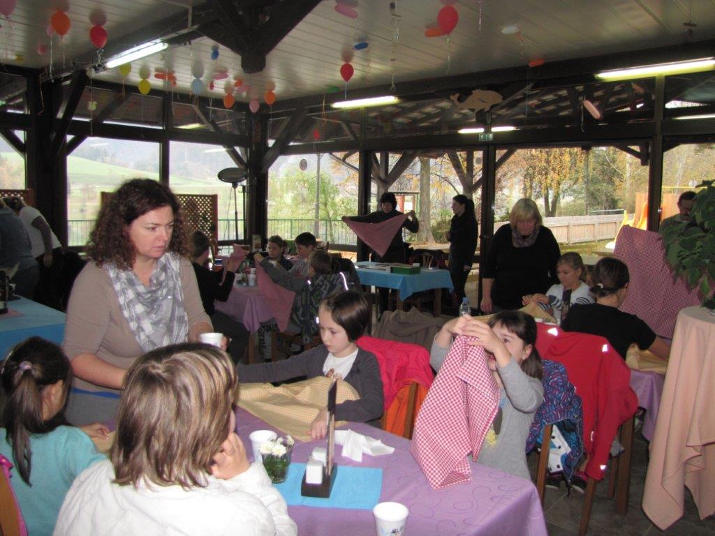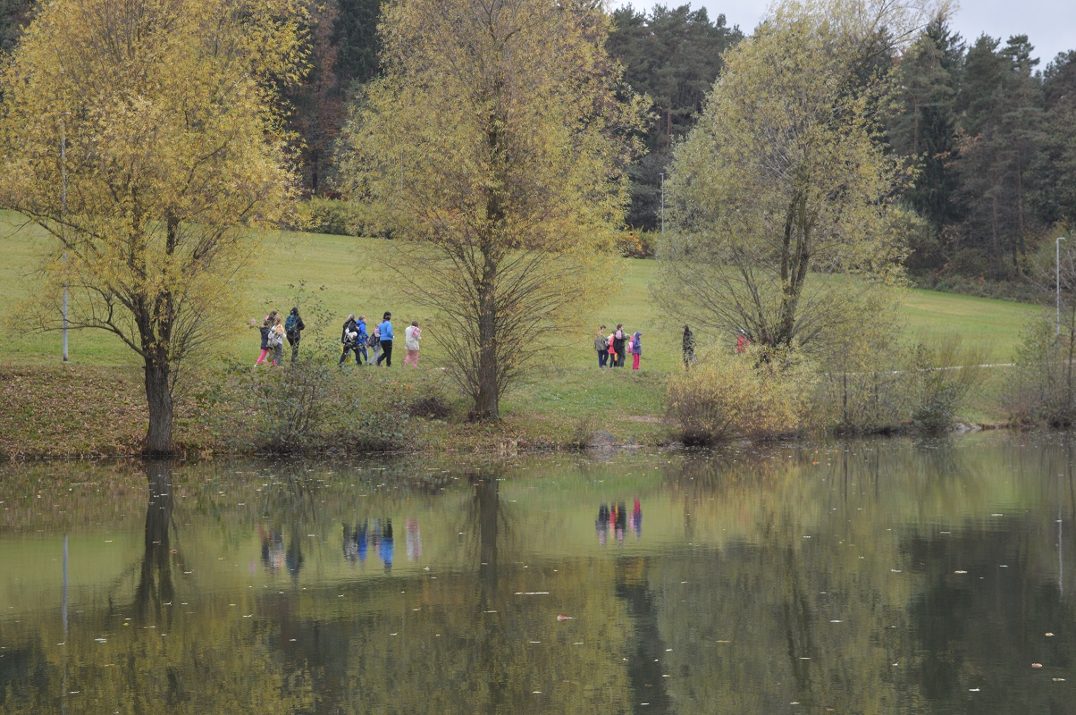 Med jesenskimi počitnicami smo za naše mlade turiste organiziralo še en dan, poln doživetij. V soboto, 5. novembra, smo jih popeljali na odkrivanje zanimivosti ob Škalskem jezeru. Pridružilo se nam je tudi nekaj gostov, saj smo želeli širšemu krogu predstaviti naše ideje in nekaj že izdelanih pripomočkov za preživljanje prostega časa, učenje in zabavo otrok v naravi. Stalnim animatorkam Elici, Olgi in Veri so se tokrat pridružile še Ana, Eva in Marija. Dan je bil na žalost malo bolj siv kot bi si želeli,  a dež, ki nas je nekajkrat hotel prestrašiti, smo le odgnali.