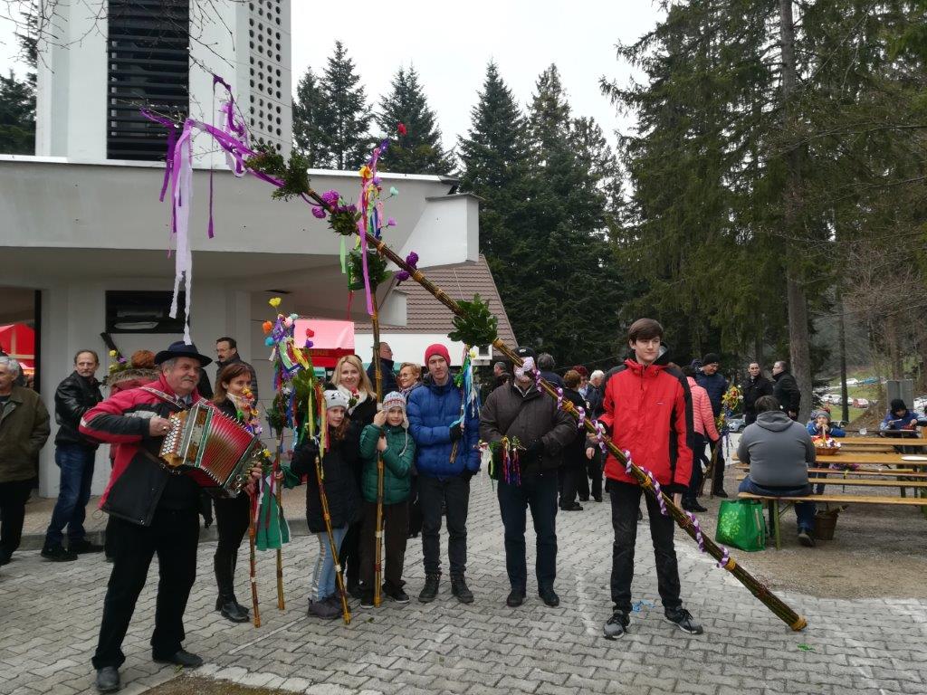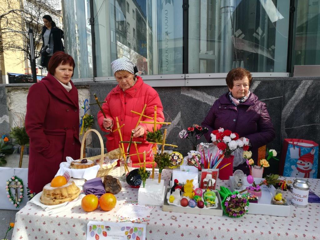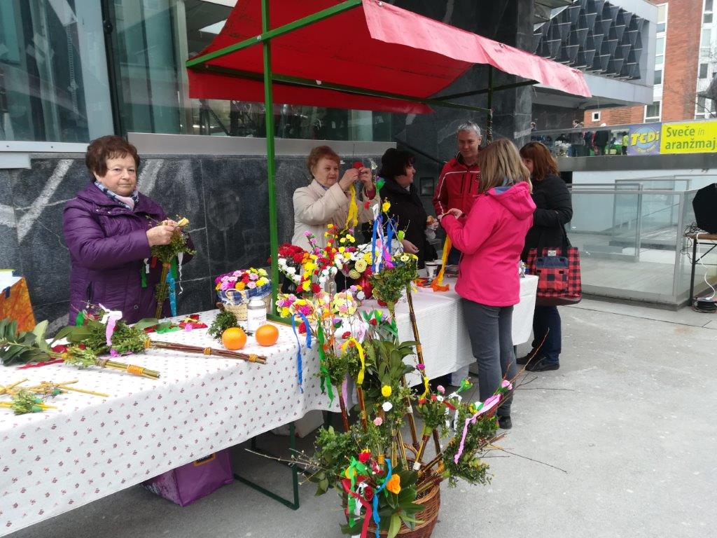 V soboto, 24. marca 2018, dopoldne se je društvo v sklopu Turistične zveze Velenje predstavilo na mestni tržnici z velikonočnimi običaji. Pripravili smo aranžmaje, značilne za čas okrog velike noči (blagoslov jedi in ognja, pisanko), večino prestavitve pa so zavzemali snopi in rože iz krep papirja, značilni za cvetno nedeljo. Članice sekcije izdelovalk rož iz krep papirja so obiskovalcem po želji tudi dodatno okrasile izbrani snop. Istega dne popoldne so izdelovalke rož sodelovale še na velikonočnih delavnicah, ki jih je organiziral Muzej Velenje na Velenjskem gradu. Udeležencem delavnice je bila posebej predstavljena razstava rož v kapelici svetega Jurija.