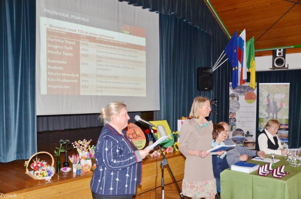 Letos je bronasti znak TZS s pisnim priznanjem iz rok sekretarke TZS Karmen Grebenc Burger prejelo 7 članov društva: Angela Jan, Edo Hudournik, Marta Mravljak, Gabrijela Rednak, Darinka Tepej, Marija Tepej in Dragica Turk. Posebna priznanja za pomemben prispevek k uspehom društva v letu 2019 so iz rok predsednice društva prejeli Zvone Kodrun, Saša Miklavžina in Jožica Brešar. Sedemnajst članov je prejelo priznanje za 10 let dela v društvu ter 20 članov pohvalo za opravljenih več kot 100 prostovoljnih ur dela.