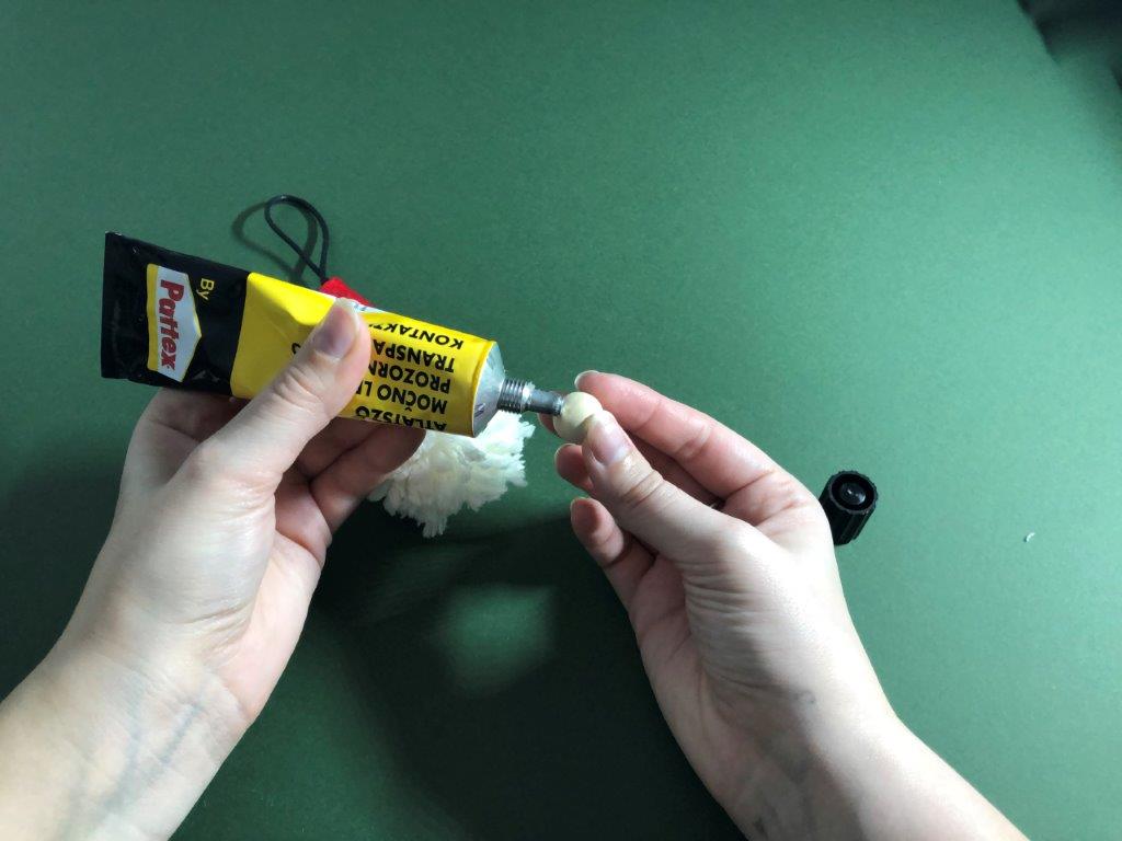 Iz lesene perlice (ali kakšne doma najdene alternative) škratku naredimo majhen nosek.
