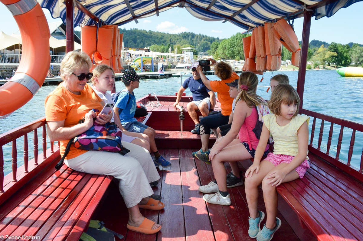 V sredo, 10. 8., so se otroci pod vodstvom Zvoneta Kodruna ter ob pomoči Mire Cerkovnik in Eve Kumer znova peš podali mimo Škalskega do Velenjskega jezera na Čolnarije. Pri čolnarni jih je čakal jezerski čoln, pleterca, s katerim so jih člani Kluba vodnih športov popeljali po jezeru in jim predstavili zgodbe potopljenih vasi. Druženje so zaključili na Velenjski plaži, kjer so »za povrh« dobili še sladoled.