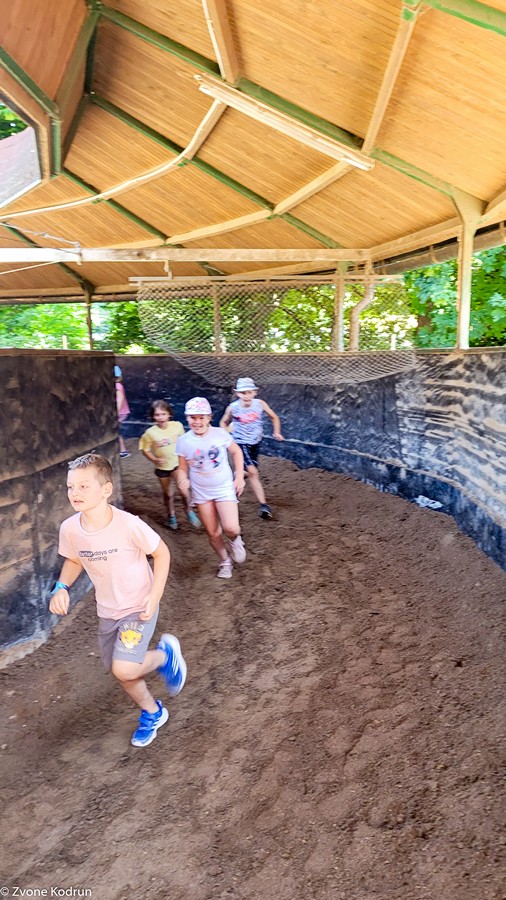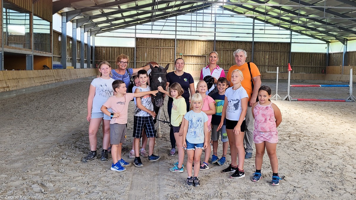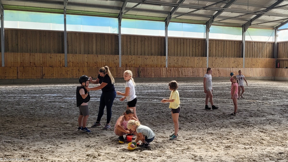 Konjarije so že del železnega repertoarja poletnih počitniških aktivnosti, ki jih vodi Zvone Kodrun. Tokrat so bile na programu 20. 7., pri izvedbi pa so Zvonetu pomagale Pavlica Šibanc Kodrun in Mira Cerkovnik ter animatorki Konjeniškega kluba Velenje Urška Kodrun in Špela Zdolšek. Po sprehodu od gasilskega doma Škale do Konjeniškega kluba so si najprej ogledali hleve ter spoznali delo s konji, sledilo pa je jahanje in zabavne igre.