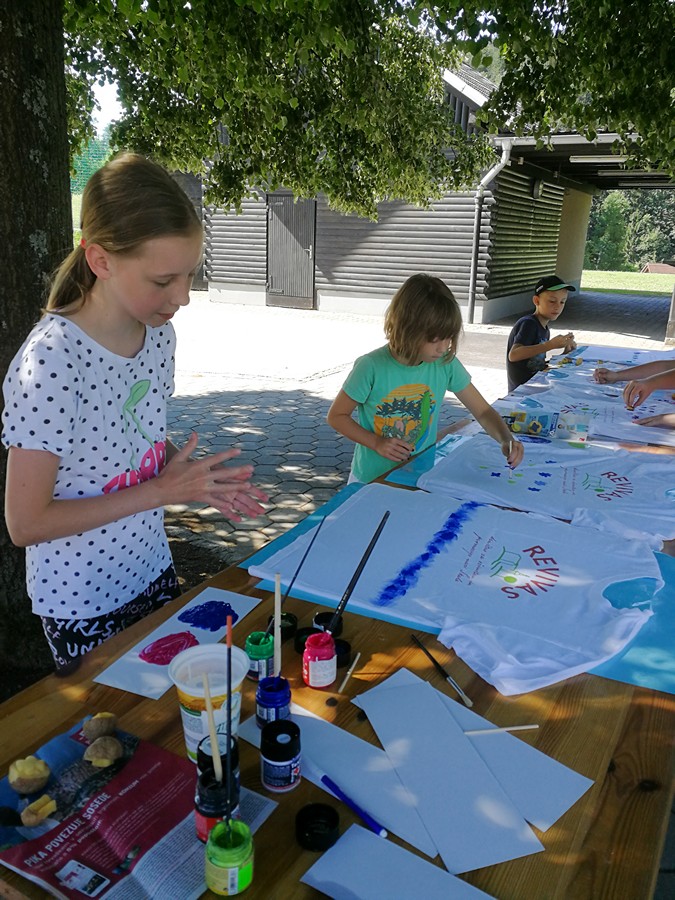 Uvodno srečanje, Štemplarije, je 6. 7. organizirala Marija Glinšek ob pomoči Cvetke Lipnik, Dragice Turk in Zvoneta Kodruna. Pri brunarici pri gasilskem domu Škale so otroci pod njenim vodstvom barvali in potiskovali majice ter pri tem izražali svojo kreativnost in se zabavali.