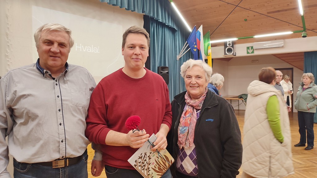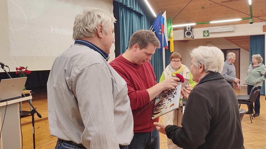 Predsednik Zvone Kodrun se je gostu zahvalil za zanimivo in poučno predavanje ter mu v zahvalo izročil nageljček iz krep papirja, ki ga je izdelala Angela Jan, članica sekcije izdelovalk rož iz krep papirja.