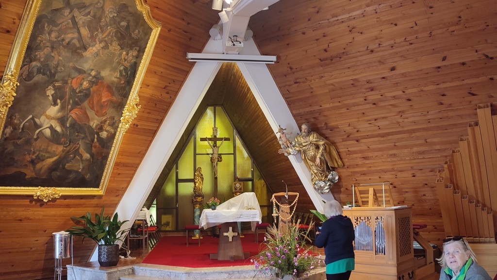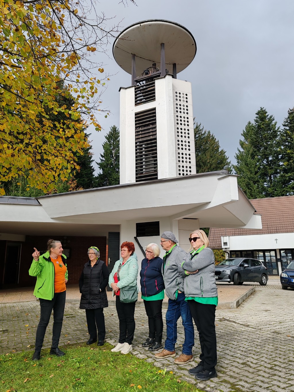 Srečanje z razstavljavci je naše društvo izkoristilo tudi za predstavitev kraja in ogled nekaterih zanimivosti. S pomočjo škalskih gasilcev smo jih popeljali do cerkve sv. Jožefa, kjer so izvedeli marsikaj o zgodovini vasi, njenem prvem in drugem središču, pa seveda tudi o šolah in obeh cerkvah. Sledila je vožnja do krožišča Gaberke in v smeri proti Plešivcu, nato pa po javni poti mimo Voduška v našo prvo dolino, kjer so obiskovalci izvedeli nekaj o ekološki kmetiji EKO Mlinar, Štali Glinšek, kapelicah, podjetnikih in kmetih na tem območju ter o bodoči trasi hitre ceste tretje razvojne osi. Pot so nadaljevali po srednji dolini mimo tretjega središča vasi do Strževe domačije. Tu smo jim predstavili domačijo Strž ter življenje in delo dr. Jožefa Krajnca, ob razgledišču in po poti pa podali še nekaj informacij o Šaleški dolini, vasi Hrastovec in naši krajevni skupnosti.