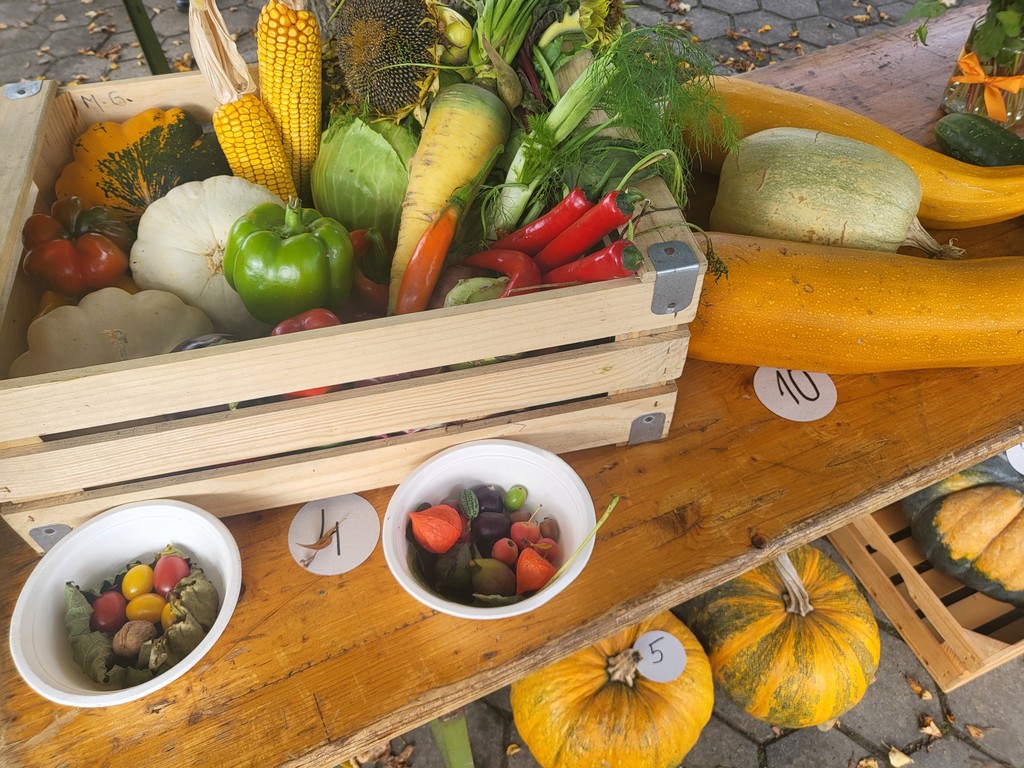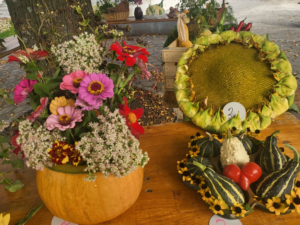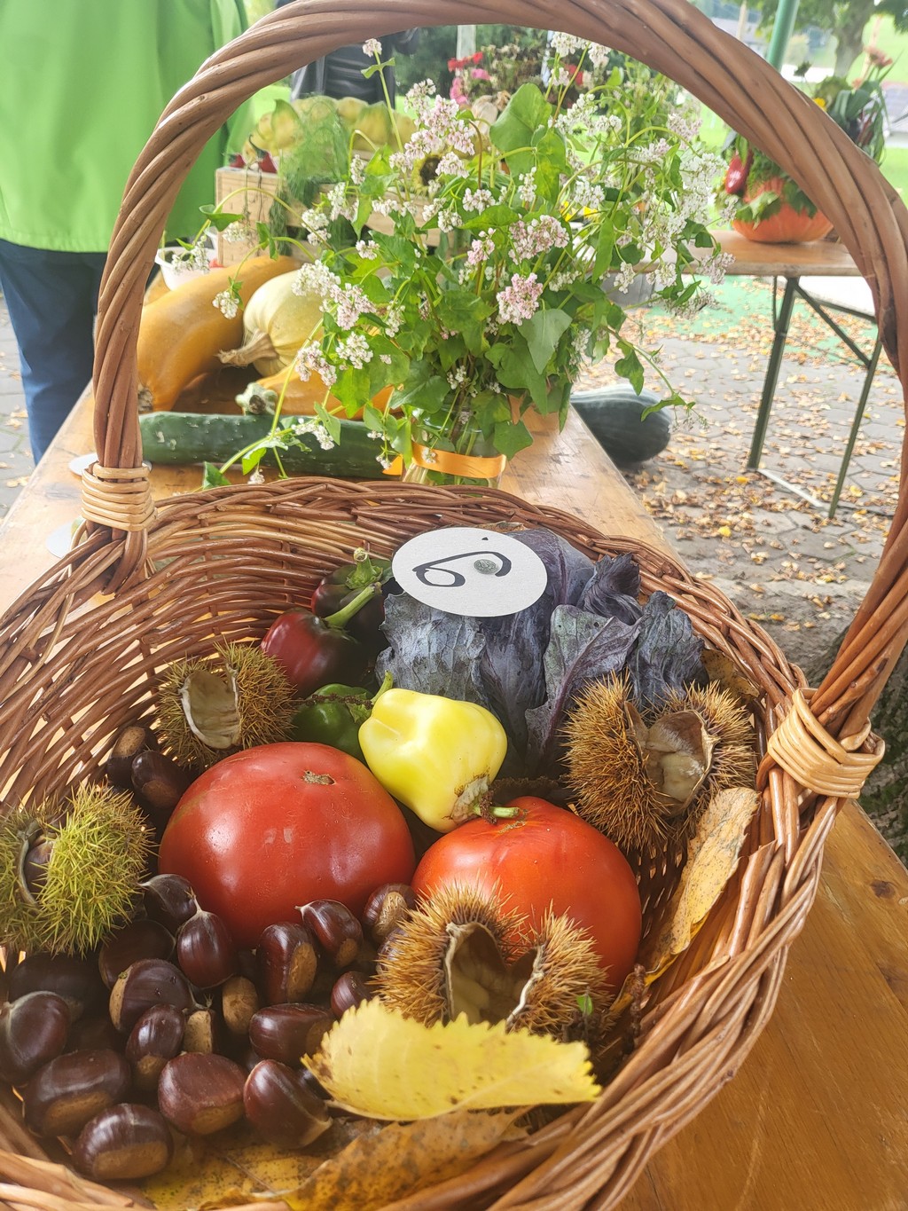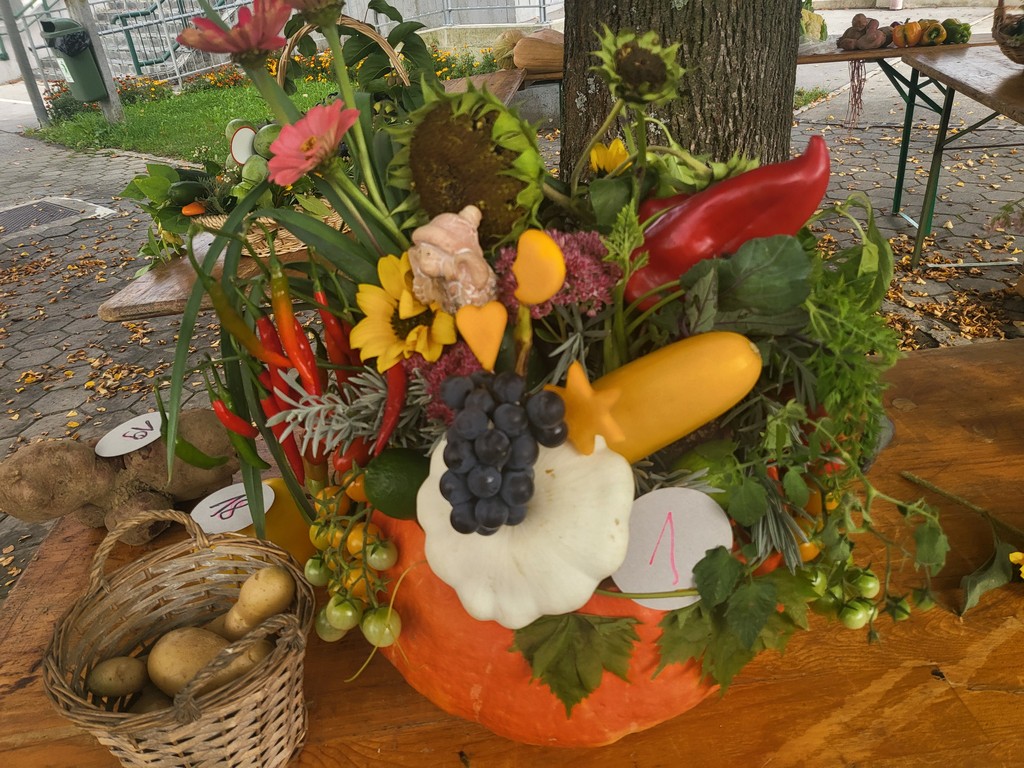 Ljudje so prinesli veliko zanimivih pridelkov, letos prvič pa tudi aranžmajev s sadjem in zelenjavo. Težko je bilo izbrati najbolj zanimiv pridelek (zmagala je družina Lipnik z ogromno bučo) in najlepši aranžma (zmagala je Mira Cerkovnik).